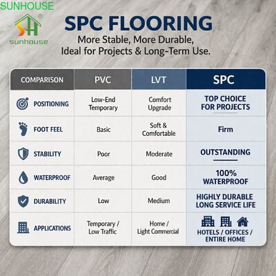 Progettato per appaltatori di progetti, sviluppatori immobiliari e distributori regionali che non possono permettersi fallimenti dei pavimenti a metà costruzione, il pavimento rigido SPC Huiju combina una base in pietra-plastica ad alta densità con un profilo a incastro di precisione in cinque opzioni di spessore: 4,0, 4,5, 5,0, 6,0 e 6,5 mm. Sia che il lavoro richieda una tavola residenziale leggera o una tavola con strato di usura da 0,7 mm classificata per traffico commerciale pesante di Classe 42, un unico fornitore copre l'intera gamma di specifiche. Il nucleo non in legno elimina ogni modalità di guasto legata all'umidità associata a laminati e legni ingegnerizzati, mentre la classificazione antincendio Bfl-s1 e la resistenza allo scivolamento opzionale R10/R11 aprono il prodotto a tipi di edifici in cui non è possibile specificare pavimenti in vinile standard. Cartoni da esportazione a cinque strati con documentazione fotografica completa del carico riducono i ritardi nelle ispezioni portuali e le controversie assicurative sulle spedizioni internazionali.