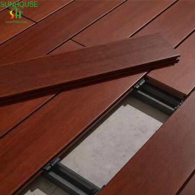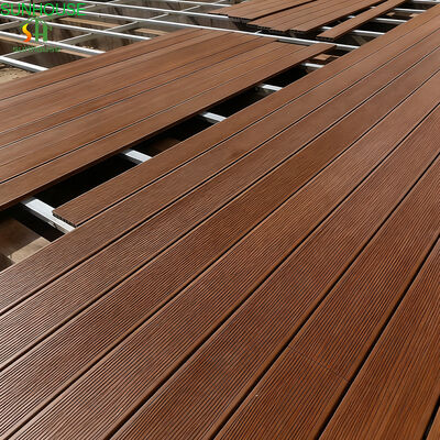 La consistenza superficiale viene applicata attraverso un processo di finitura in tre fasi che combina rilievo 3D, levigatura e spazzolamento.Questo approccio a strati produce una superficie che sembra legno naturale sia visivamente che sotto i piedi, con una microtessura sufficiente a mantenere l'aderenza in condizioni di bagnato.La resina HDPE e gli additivi stabilizzatori UV vengono incorporati nel corpo del cartone prima dell'estrusione la resistenza alle intemperie e la stabilità del colore sono integrate nella struttura del materiale, non dipendente da trattamenti superficiali che si degradano nel tempo.